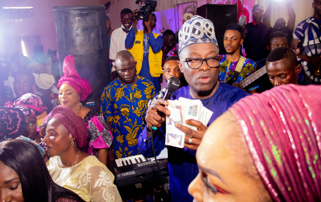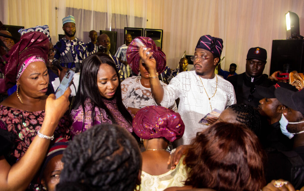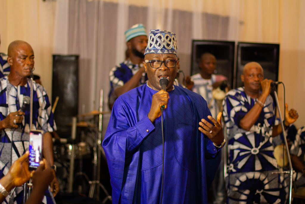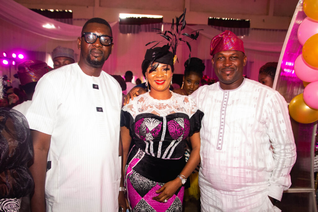 Pastor Wale Ojo declared the event open with prayer, after which the Fuji maestro, Adewale Ayuba, delighted the sitting guests with his sonorous voice and both local and continental dishes by Famfab catering and drinks were excellently served by ushers in their black outfits, while Sola Oladele aka Pa Aristo, Niyi Adeyemi aka Alawada and Afolabi Olorunfemi aka Asorogbayi were masters of the ceremony.